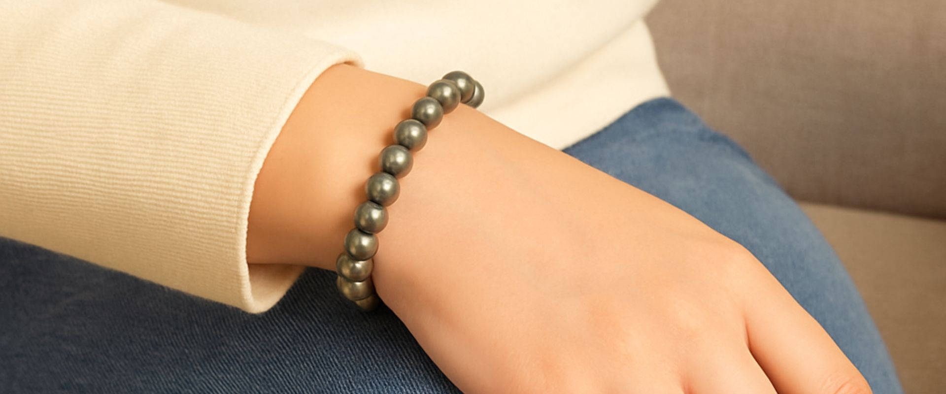 Natural Pyrite Bracelet – Healing Stone for Protection, Luck & Wealth – Adjustable Bead Bracelet for Men & Women