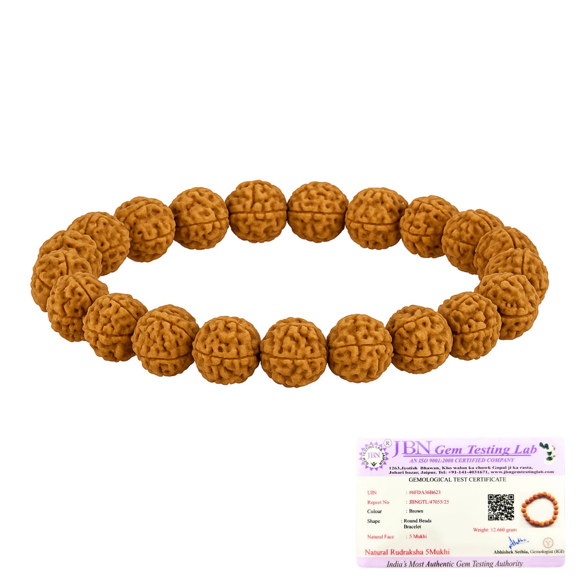 5 Mukhi Rudraksha Bracelet – Certified 10MM Natural Spiritual Beads for Peace & Protection