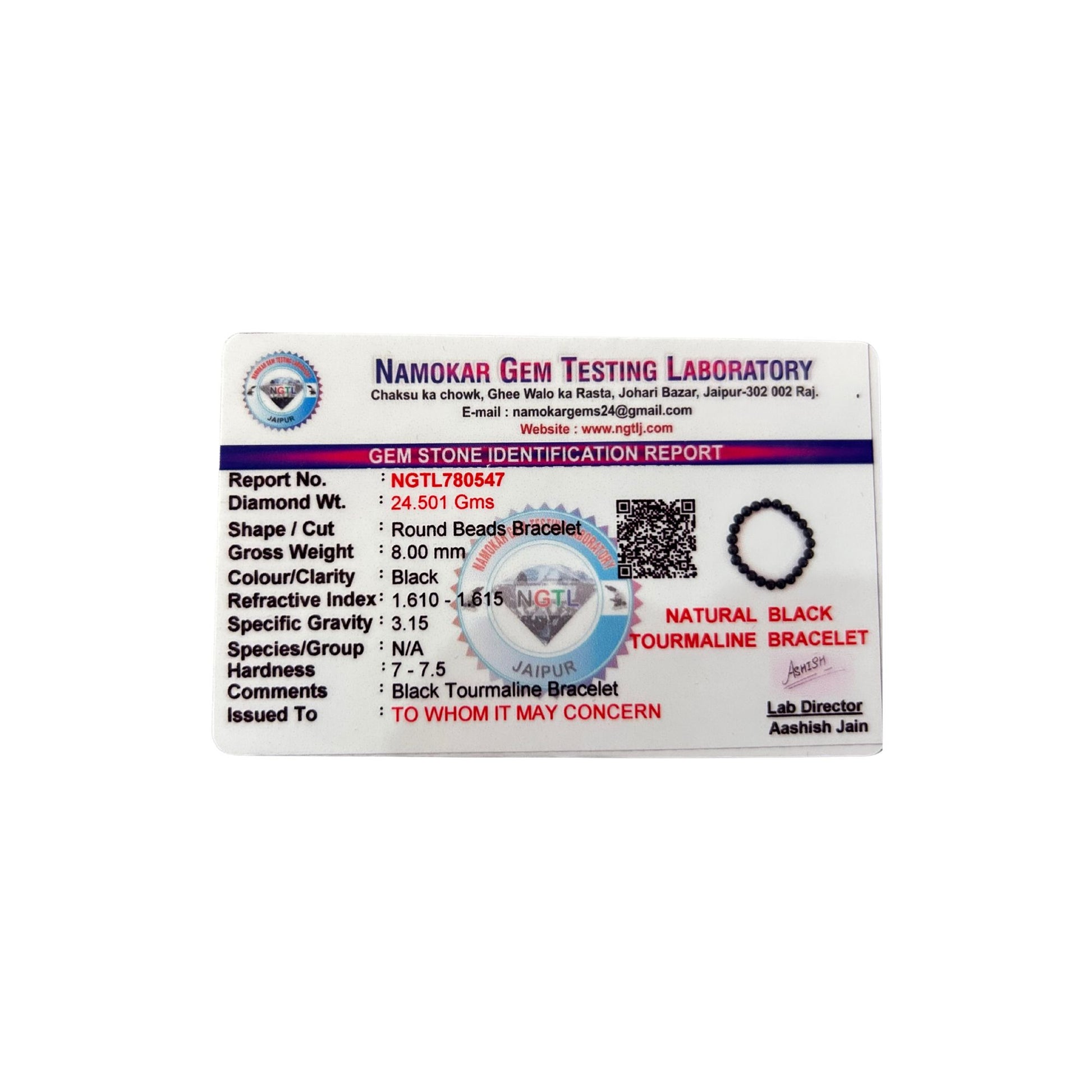 Each bracelet is crafted with 100% natural Black Tourmaline beads, carefully tested and certified for authenticity by a trusted gemstone lab. This ensures you receive a genuine stone with real metaphysical benefits — not an imitation.