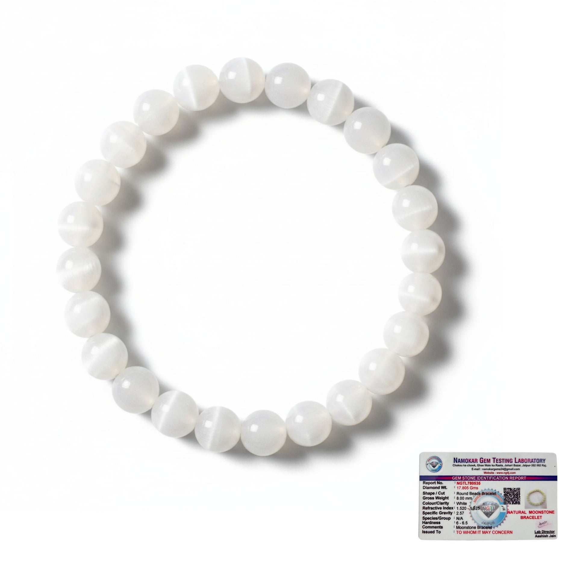 Each bracelet is crafted with 100% natural Moonstone gemstones, meticulously lab-tested and certified for authenticity. Its mesmerizing glow (adularescence) reflects both beauty and powerful spiritual energy.