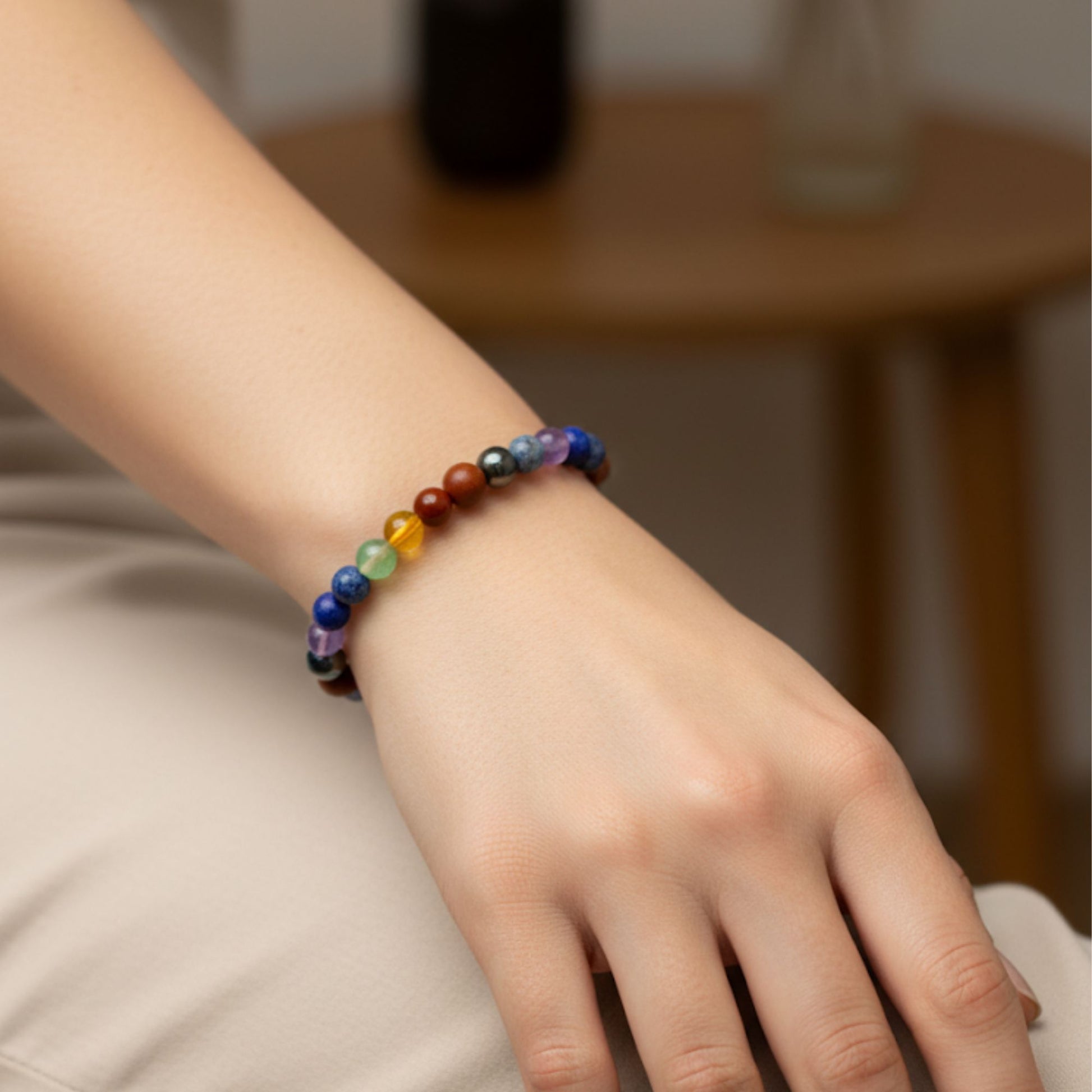 Our Seven Chakra Bracelet is made using 100% genuine gemstones, each carefully lab-tested and certified for authenticity. Together, these stones activate and balance all seven chakras, promoting energy flow, focus, and healing.