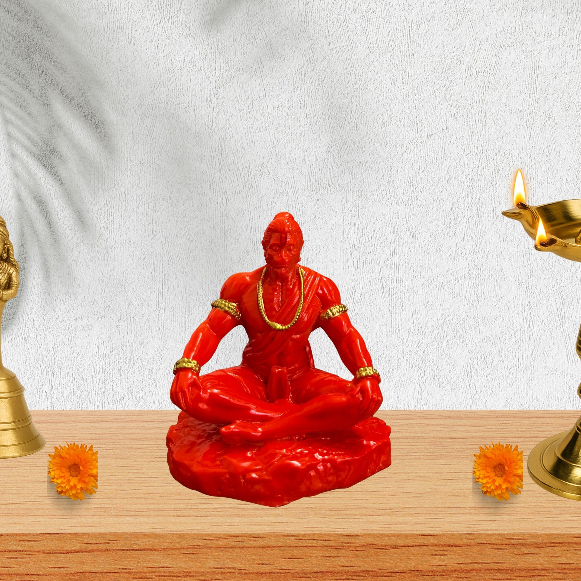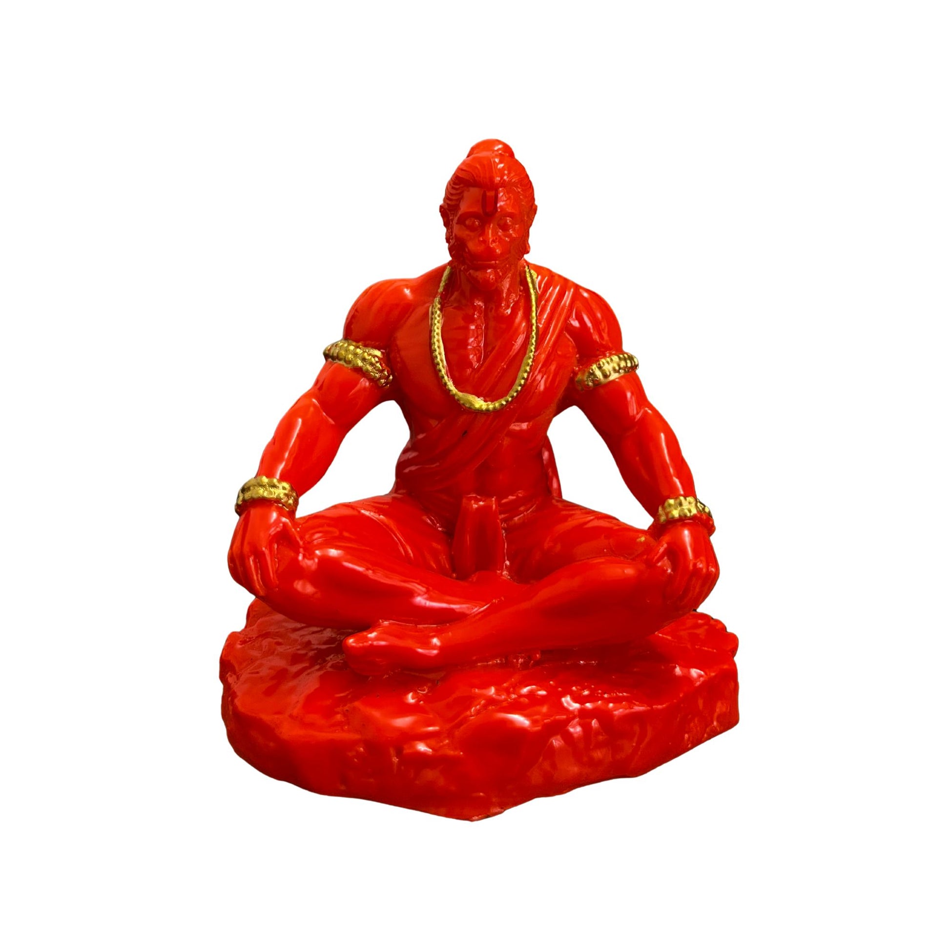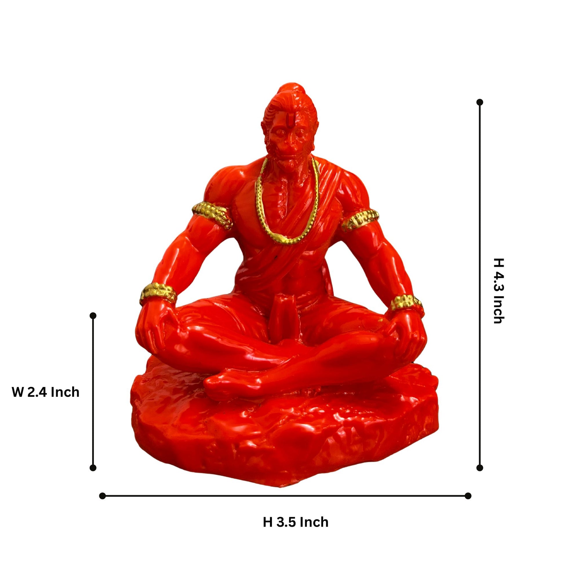 Orange Meditating Hanuman idol (10 cm) in peaceful seated pose. Perfect for puja rooms, car dashboards, desks, and gifting.